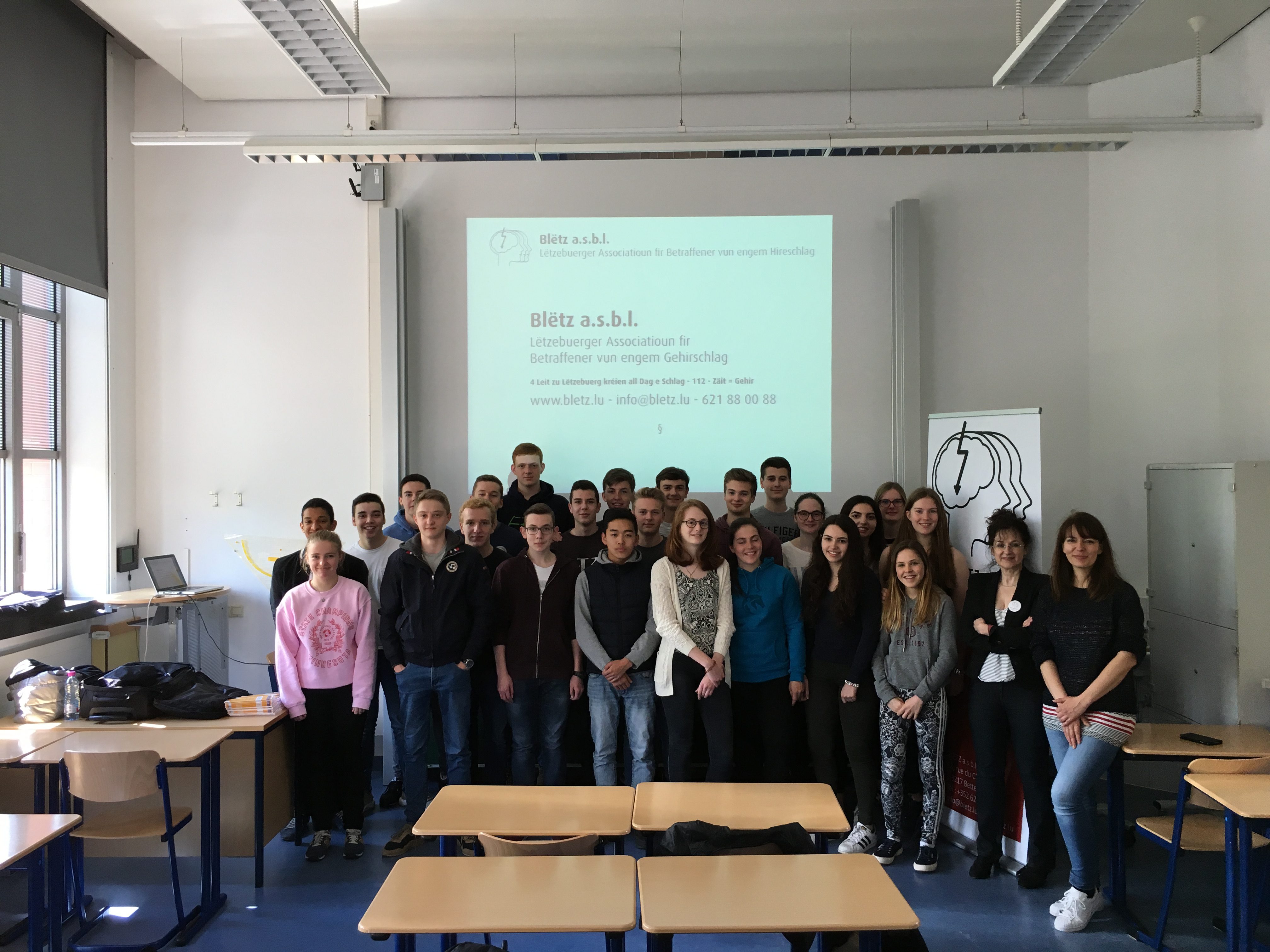 Read more →Dans le cadre du cours de soins neurologique sur l’AVC, le LTPS Val St.André Strassen avait invité Blëtz asbl pour présenter...