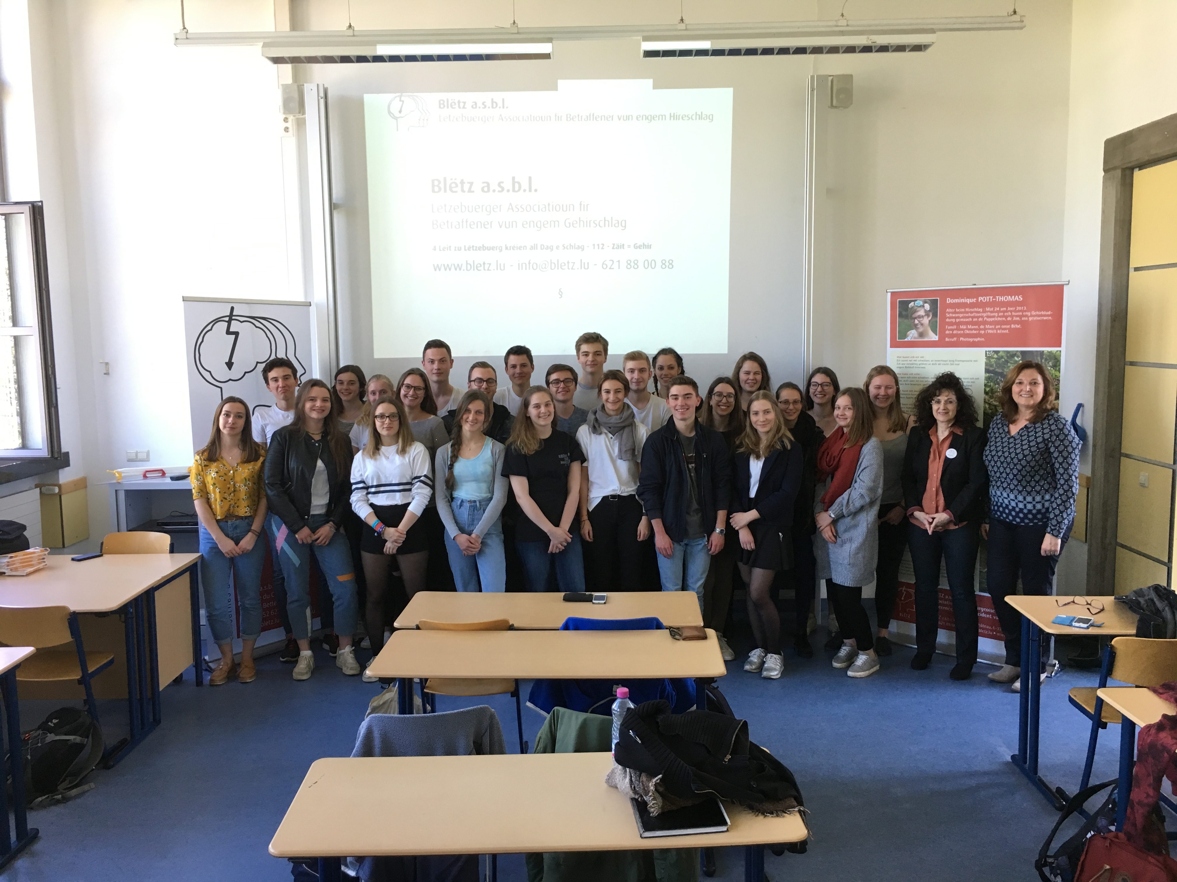 Dans le cadre du cours de soins neurologique sur l’AVC, le LTPS Val St.André Strassen avait invité Blëtz asbl pour présenter...