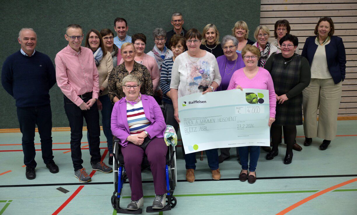 Mam Heischter Nomëtteg vum éischten Adventssonndeg, den vun de Fraen a Mammen Heischent-Todler- Réngel, Merscheet an Heischtergronn organiséiert gi war, huet och dat läscht Joer zu Heischent e ganz groussen Erfolleg kannt. Mat engem schmackhaften Iessen, enger Kaffistuff an dem Verkaaf vu selwergebastelten Chrëschtdekoratiounen an Arrangementer am vollen Festsaal, si di vill Leit och richtig verwinnt gin. Wéi dat schon säit Joeren zur Traditioun gehéiert, ass den Erléis vum Nomëtteg fir e gudden Zweck gespend gin. Viru kuurzem war et nees an der Buvette vum Tennis Heischent esou wäit , wou am Kader vun der Scheckiwerreechung an den oprichtigen Mercien vun all denen fräiwëlligen Bedeeligten, déi zum Erfolleg vun desem Event bäigedroen hunn, hunn d‘Nicole Walesch, Trésorière. an d‘Yasmine Silbereisen, Komiteemembar vun Blëtz a.s.b.l. villmols Merci gesoot fir de Scheck vun 4 000 Euro, den der Vereenegung „Blëtz asbl “ – Association luxembourgeoise pour concernés d’un accident vasculaire cérébral- zugut könnt. Noodeems dat béid Scheckempfänger d’Aufgabegebiet mat hiren Aktivitéiten vun hirer Vereenegung kuurz virgestallt hun, war et d’Madame Buergermeeschter Mireille Welter an den Här Paschtouer Marco Wehles, déi op dat éierenamtlicht Engagement vun de lokale Fraen a Mammen an der Gemeng agaangen sin, déi mat hirem Asaatz, den Erléis fir karitativ Zwecker och weidergin an de Respekt an d’Unerkënnung vun der Gemeng a vun der Pâr ouni Zweifel verdingt hunn.